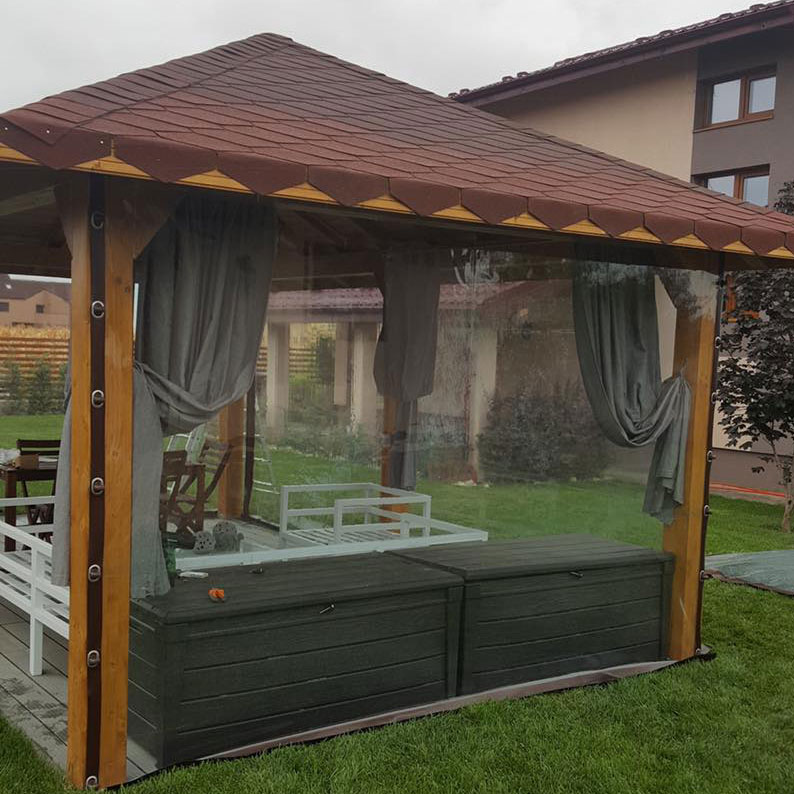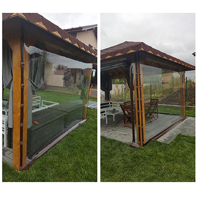 Ideala impotriva vantului, ploii, zapezii, cat si a prafului! Ideala pentru terase, foisare, spatii comerciale, balcoane, etc, in sezonul rece, avand calitati de mentinere a caldurii dar si de protectie a spatiului de intemperii.
