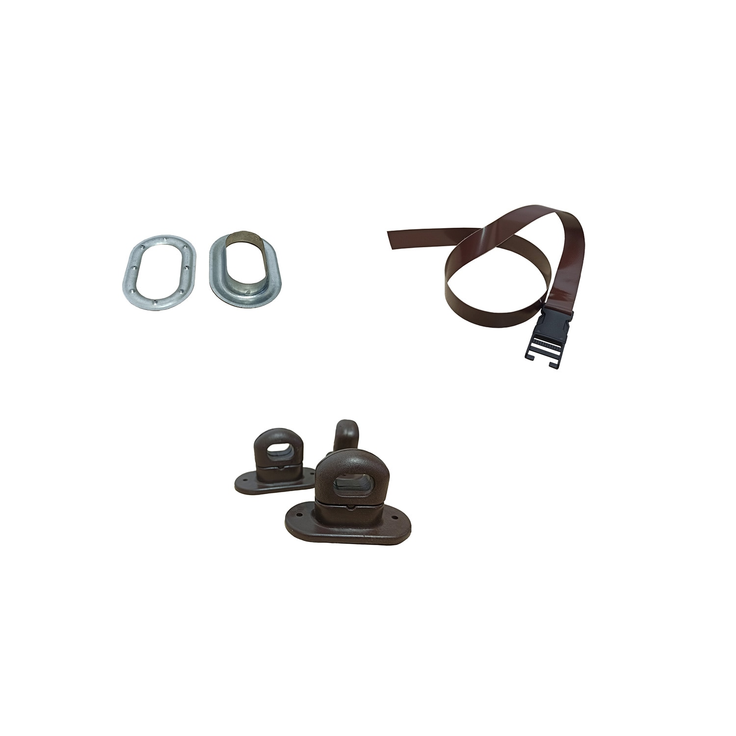 Foliile sunt confectionate cu chenar de 5 cm din prelata PVC de 650g/mp, culoare maro (la cerere: gri, alb, verde, rosu, negru), pe care sunt fixate capsele ovale metalice (pe inaltimi stanga - dreapta si latura de sus). Pentru fiecare capsa ovala, se da un buton rotativ, ce se fixeaza pe structura in 2 suruburi.