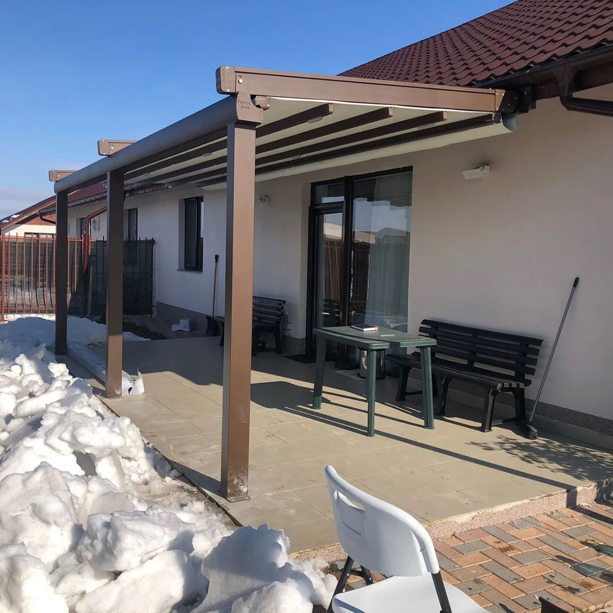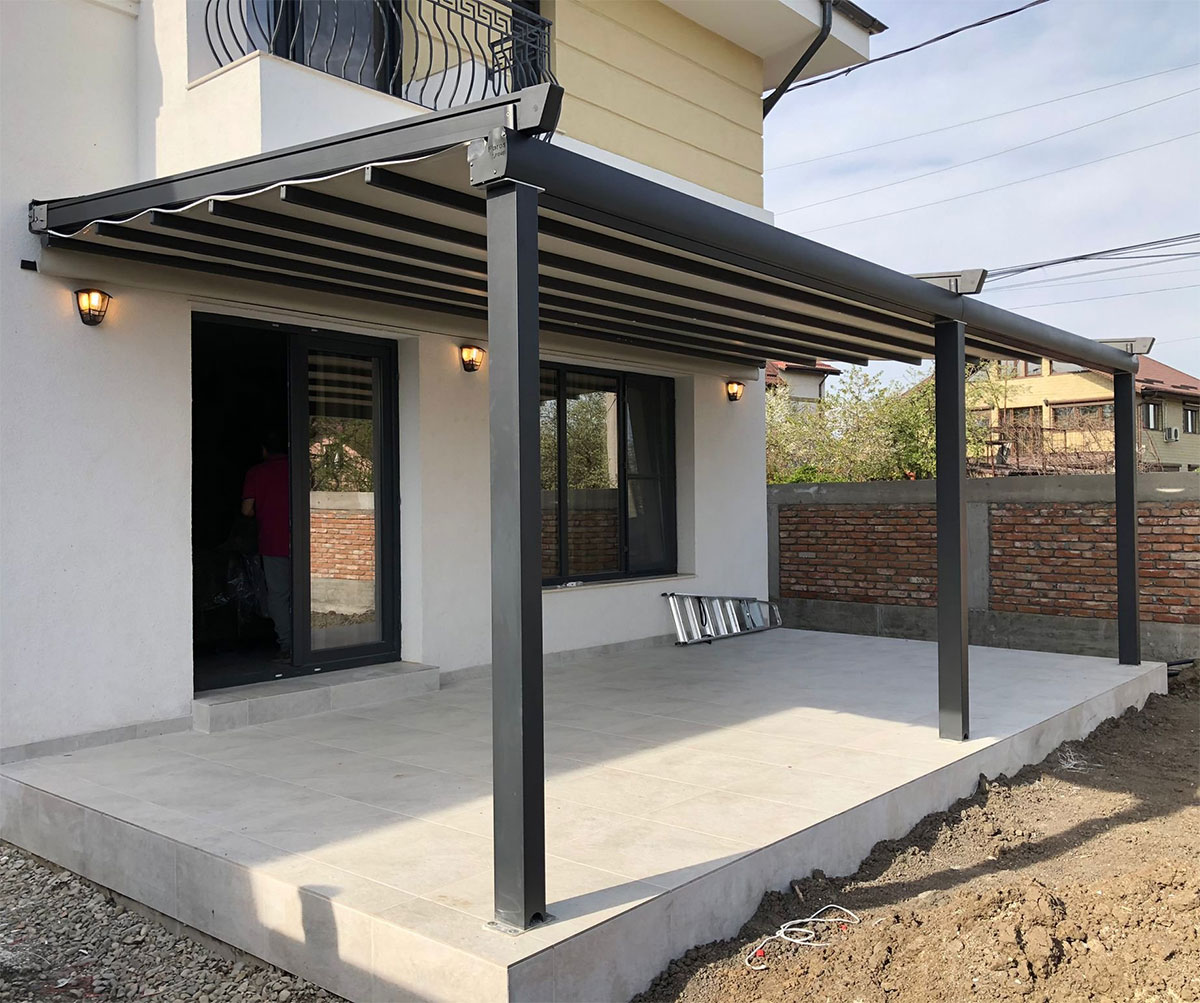 Pergolele retractabile pot acoperii orice tip de terasa sau orice fel de proiect arhitectural, fie el comercial sau rezidential, putand fi utilizate in orice anotimp. Acoperisul retractabil este prevazut cu 4 straturi de PVC plastic, System-Click si o caseta care protejeaza motorul si functionarea acestuia, sistemul asigura un nivel de performanta si securitate excelent, testat in conditii climaterice dificile precum vanturi puternice.