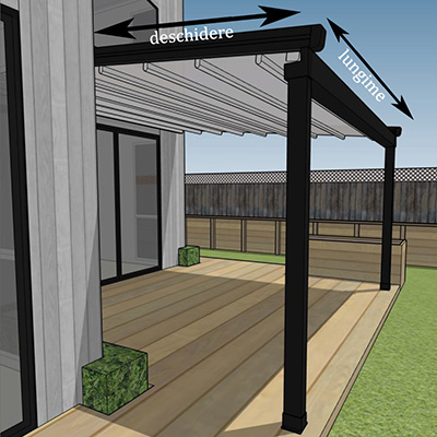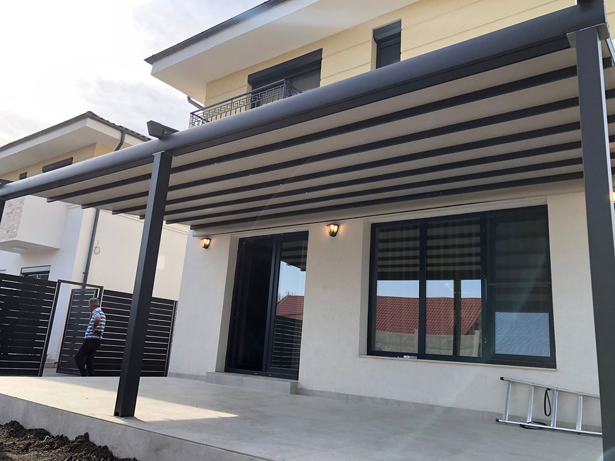 Pergola retractabila este realizata din aluminiu cu acoperis retractabil, are ca scop sa acopere terasele exterioare si sa asigure protectie impotriva conditiilor meteo dificile: ploaie, grindina, soare, vant. Pergola are acoperis retractabil cu grinzi drepte de diferite dimensiuni/grosimi ce se aleg in functie de deschiderile teraselor pentru rezistenta structurii de aluminiu.